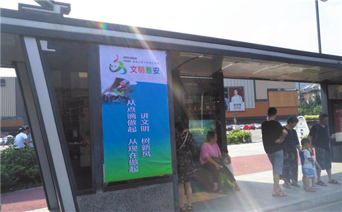 此次氛圍營造活動,城投公司在管轄范圍內(nèi)的20處公交車站臺制作了以“社會主義核心價值觀”“講文明樹新風(fēng)”為主要內(nèi)容的宣傳展板,并利用公交車站臺LED顯示屏滾動播放相關(guān)標(biāo)語。