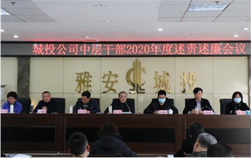 2021年1月15日下午,城投公司召開中層干部2020年度述責(zé)述廉會議,這是城投公司成立8年來,中層干部首次述責(zé)述廉,也是雅安市屬國企首次開展中層干部述責(zé)述廉,這也是城投公司黨委、紀(jì)委落實從嚴(yán)治黨、從嚴(yán)治企要求,探索制度創(chuàng)新、剛性執(zhí)行制度,推動主體責(zé)任落實的有力舉措。公司黨委主要負(fù)責(zé)人、公司黨委班子成員、中層干部、子公司主要負(fù)責(zé)人及職工代表等30余人參加了會議,市紀(jì)委監(jiān)委第四紀(jì)檢監(jiān)察室張盟松同志蒞會指導(dǎo)。會議由公司黨委委員、紀(jì)委書記魏存威同志主持。