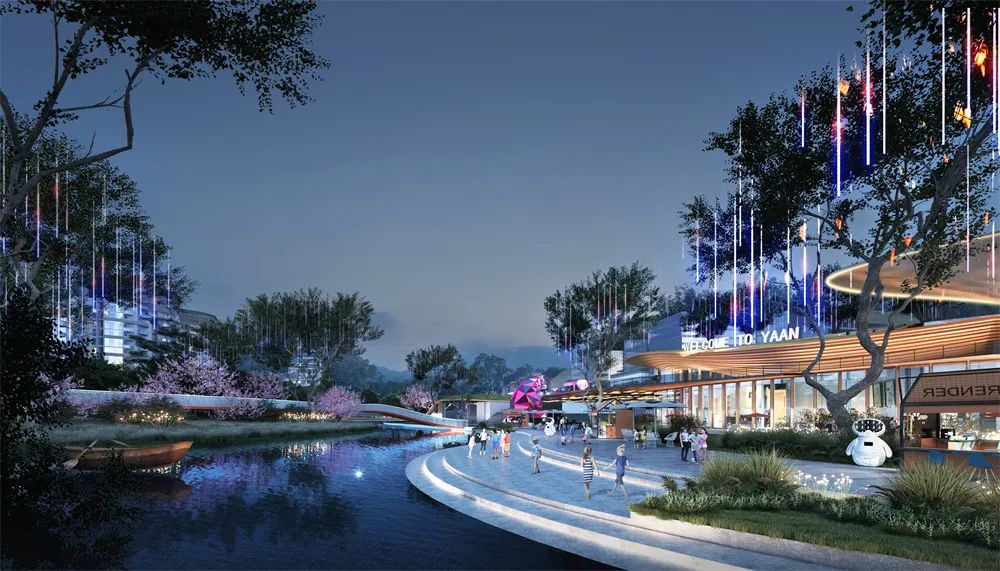 結(jié)合“雅樂匯”服務商業(yè)空間,打造夢幻的戶 外水幕劇場、休閑水岸、藝術(shù)燈光營造,展現(xiàn)出人文星河、商旅共榮、生機同棲的盛世畫卷,在這里感受雅安的風物、人文意趣,感知雨潤雅安帶來的萬物豐澤、盛世民安。