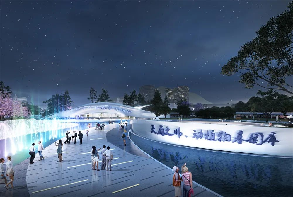 該項目規(guī)劃用地面積300余畝,由生物多樣性數(shù)字博覽中心、地被植物觀賞園、生態(tài)雅安實境體驗中心、生態(tài)水系、應急避難廣場、智慧公園系統(tǒng)等建設(shè)為載體,構(gòu)建森林城市生態(tài)系統(tǒng),激活場地城市綠色廊道,承載體驗場景,打造具有雅安地域文化特征的生態(tài)旅游目的地,以及全民友好的生態(tài)游憩健身公共服務空間。