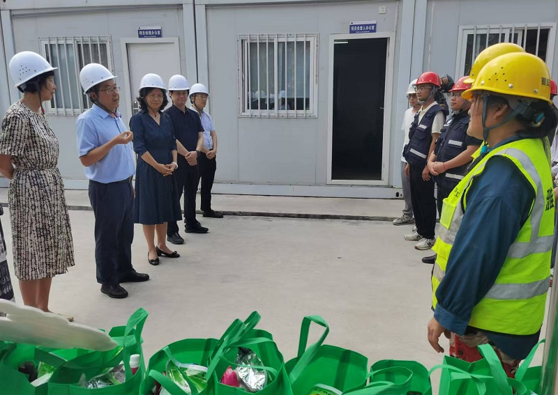慰問組一行深入項目施工現(xiàn)場,詳細(xì)了解了項目的通風(fēng)降溫設(shè)施、防暑藥品配備、清涼飲品供應(yīng)、工人作息時間調(diào)整等關(guān)鍵防暑措施落實情況,并對施工現(xiàn)場的安全防護設(shè)施進行了檢查。