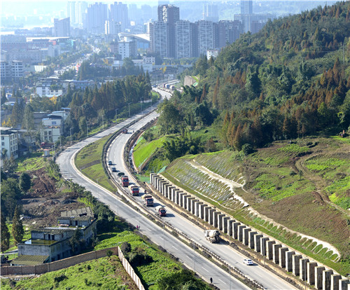 國道318線雅安至二郎山——雅安城區(qū)過境段(北外環(huán)線)項目是“4·20”蘆山強烈地震災后重建民生項目。該工程起于姚橋新區(qū)雅洪公路交叉口,東連省道305線,沿光華山西側、金鳳山南側布置,穿青鼻山隧道,順碉堡山南側修建,止于康藏路西端,順接國道108線和318線,道路全長11.8公里,總投資11.96億元。道路設計為雙向4車道,設計時速60Km/h,,道路寬度從17米至49米不等。
