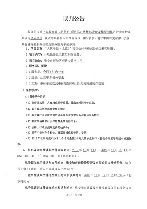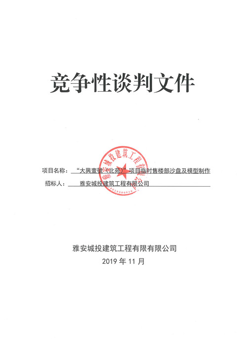 大興壹號(北苑)項(xiàng)目臨時售樓部沙盤及模型制作競爭性談判公告