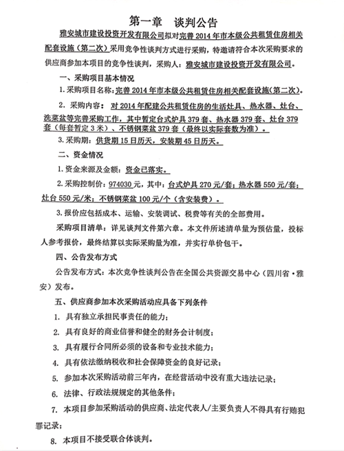完善2014年市本級公共租賃住房相關(guān)配套設(shè)施(第二次)談判公告