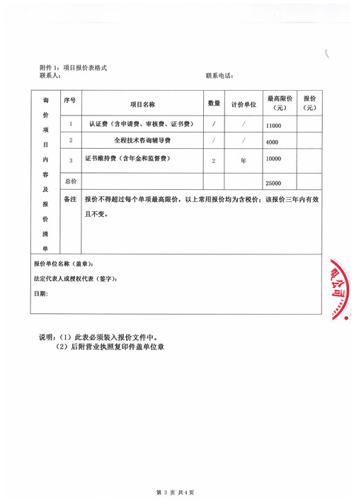 質(zhì)量管理體系ISO9001認(rèn)證詢價(jià)函