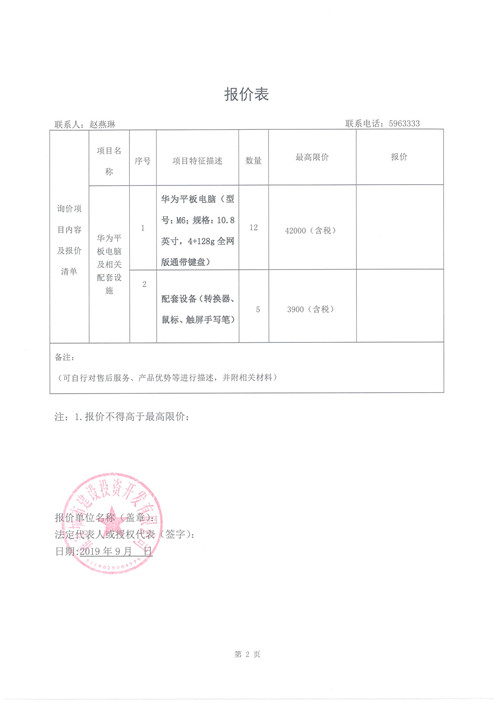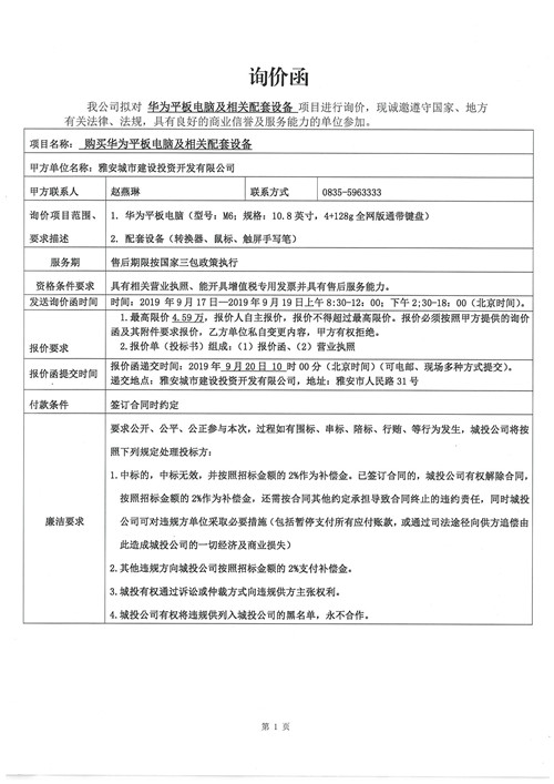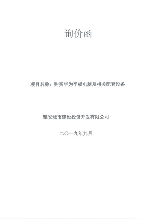 城投公司購買華為平板電腦及相關(guān)配套設(shè)備詢價(jià)函