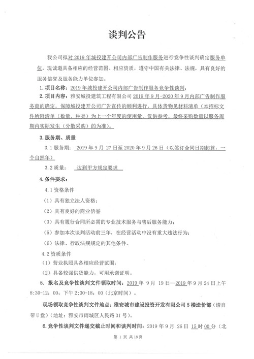 2019年城投建開公司內(nèi)部廣告制作服務(wù)競爭性談判公告