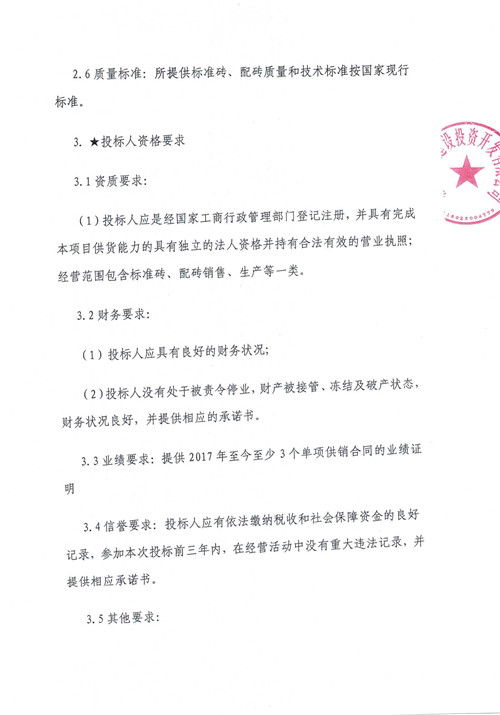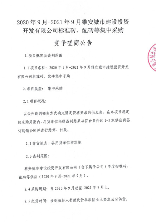 2020年9月-2021年9月雅安城市建設(shè)投資開發(fā)有限公司標(biāo)準(zhǔn)磚、配磚等集中采購(gòu)競(jìng)爭(zhēng)磋商公告