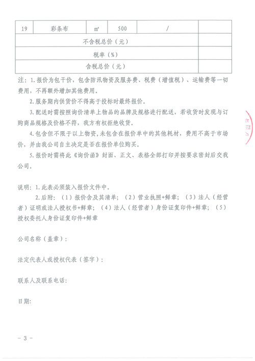 防汛應(yīng)急物資詢價函