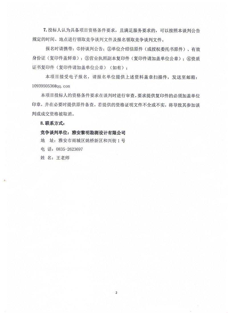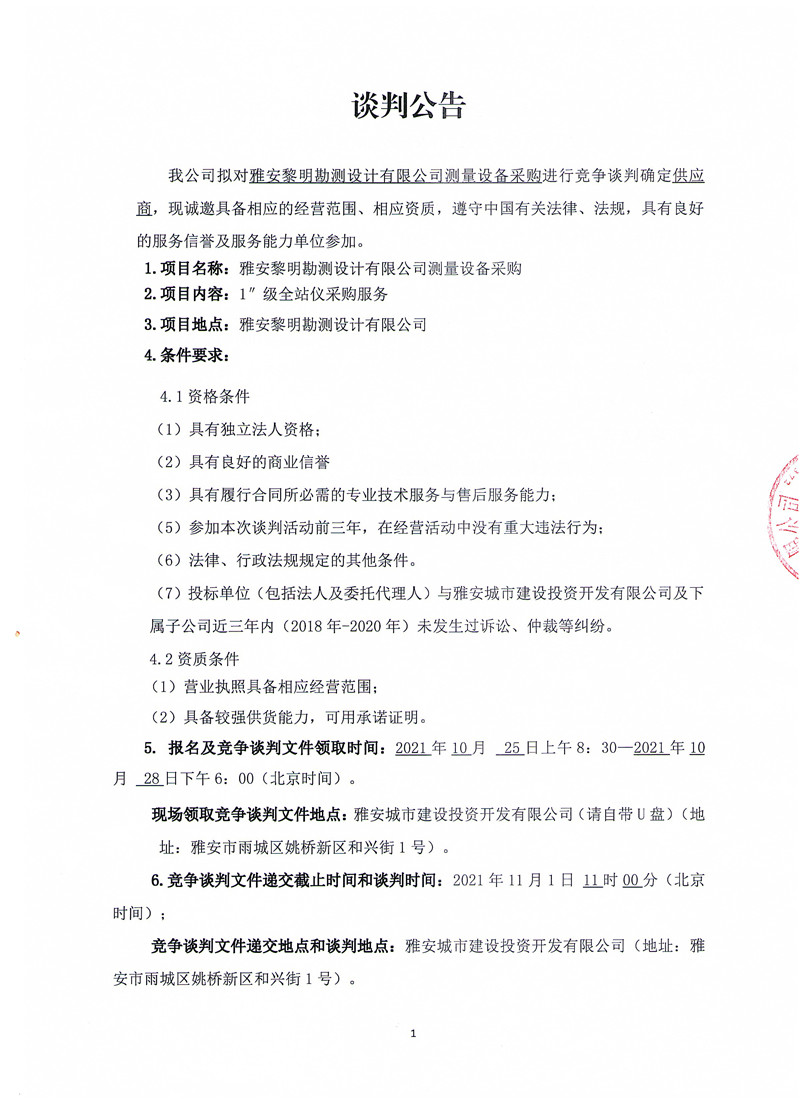 雅安黎明勘測(cè)設(shè)計(jì)有限公司測(cè)量設(shè)備采購競(jìng)爭(zhēng)性談判公告