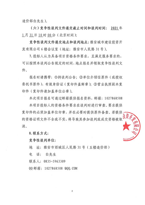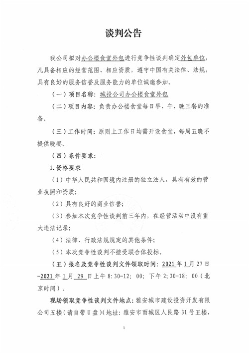 雅安城市建設投資開發(fā)有限公司辦公樓食堂外包競爭性談判公告