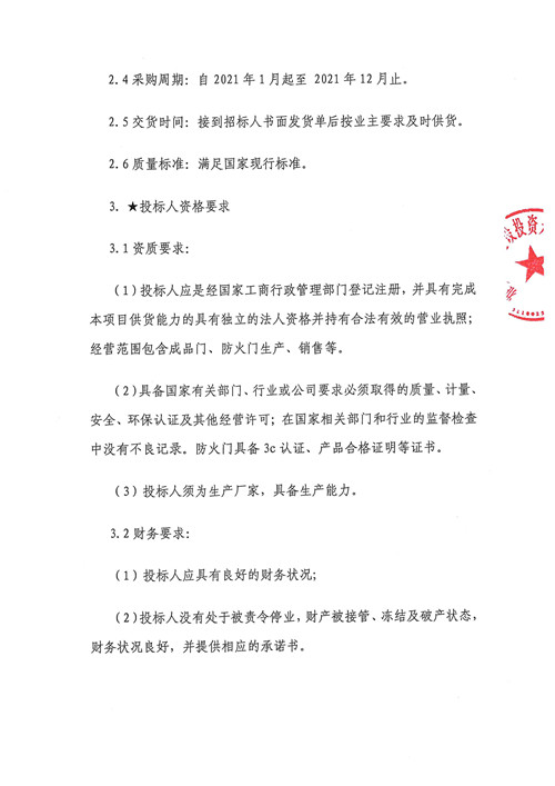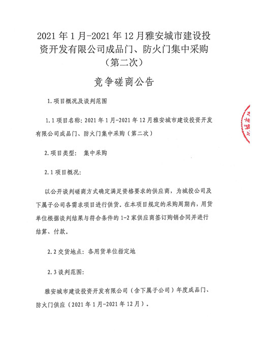2021年1月-2021年12月雅安城市建設(shè)投資開(kāi)發(fā)有限公司成品門(mén)、防火門(mén)集中采購(gòu)(第二次)競(jìng)爭(zhēng)磋商公告