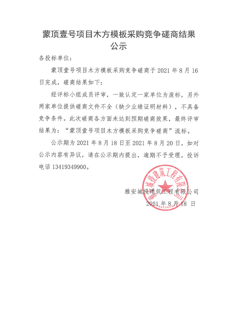 城投建工公司蒙頂壹號(hào)項(xiàng)目木方模板采購競爭磋商結(jié)果公示