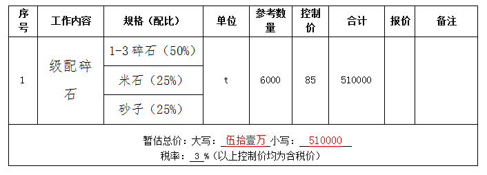 2.1項(xiàng)目?jī)?nèi)容:雅安文教新城市政道路恢復(fù)重建項(xiàng)目(一標(biāo)段)級(jí)配碎石采購(gòu)供貨商的確定,保障市政公司相關(guān)工程的順利進(jìn)行,具體貨物見(jiàn)材料清單(本招標(biāo)文件所附清單(數(shù)量、規(guī)格、種類)僅供參考,最終采購(gòu)數(shù)量實(shí)際發(fā)生(分散采購(gòu))的為準(zhǔn))。