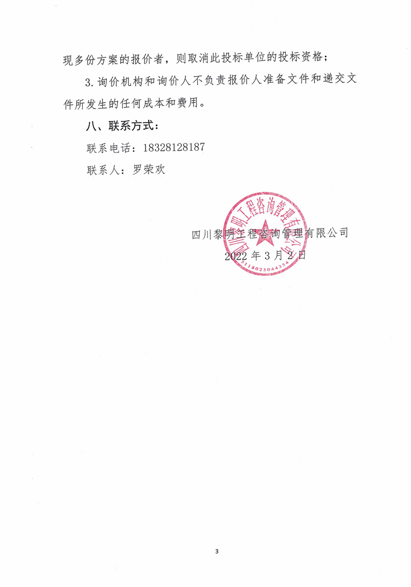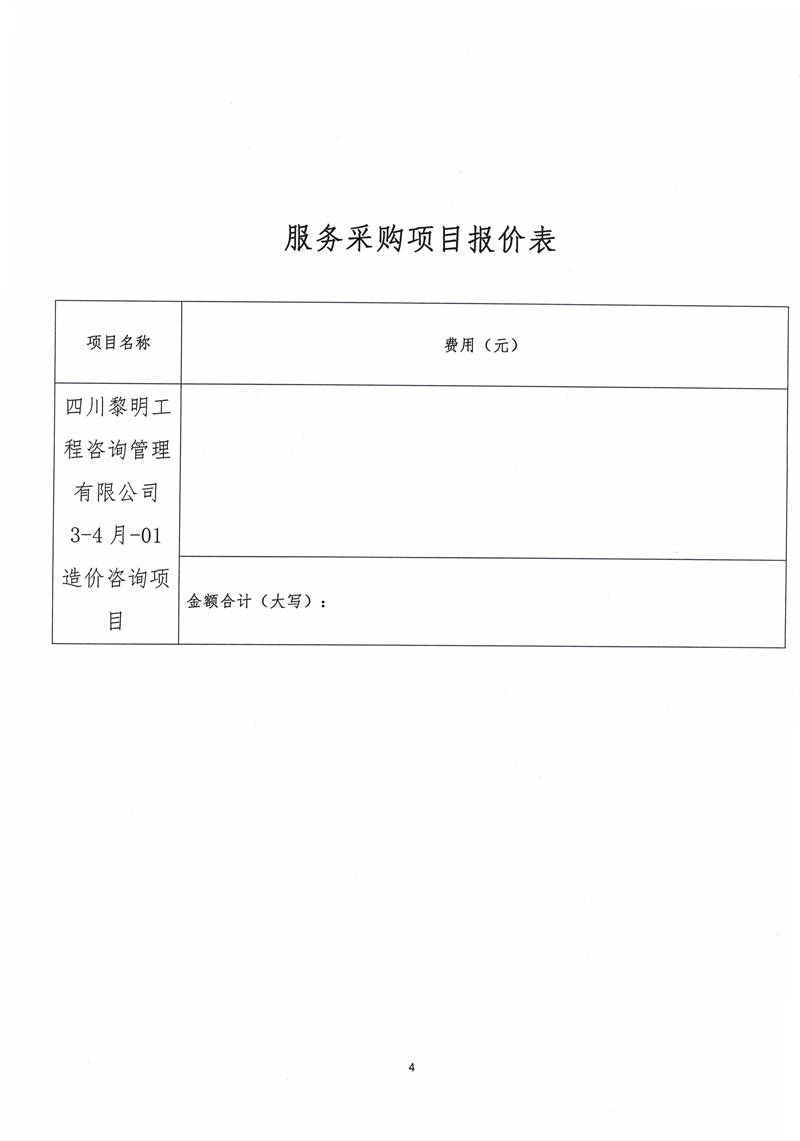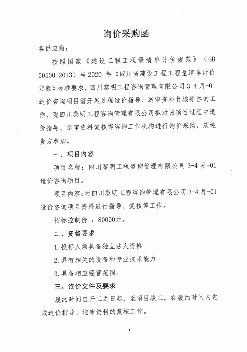 四川黎明工程咨詢管理有限公司3-4月-01造價(jià)咨詢項(xiàng)目詢價(jià)采購函