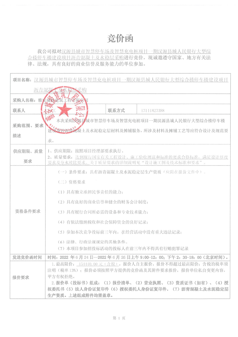漢源縣城市智慧停車場(chǎng)及智慧充電樁項(xiàng)目一期漢源縣城人民銀行大型綜合樓停車樓建設(shè)項(xiàng)目瀝青混凝土、水穩(wěn)層采購(gòu)競(jìng)價(jià)公告