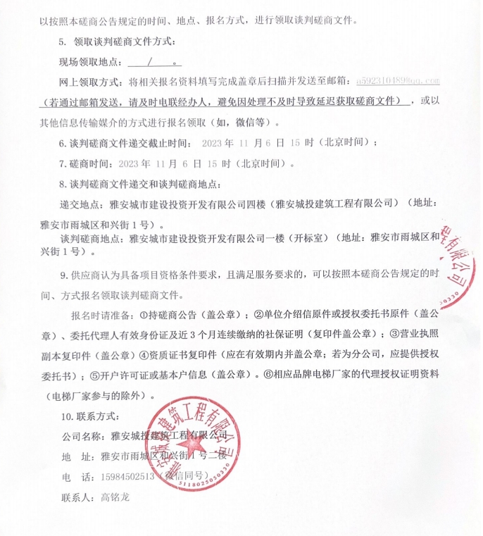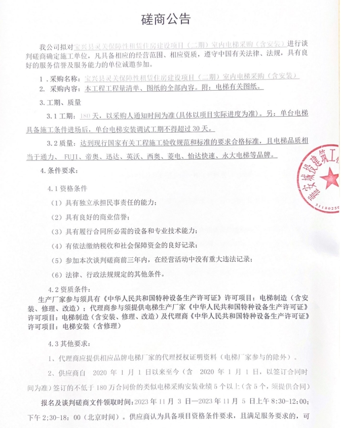 寶興縣靈關保障性租賃住房建設項目(二期)室內電梯采購(含安裝)談判磋商公告