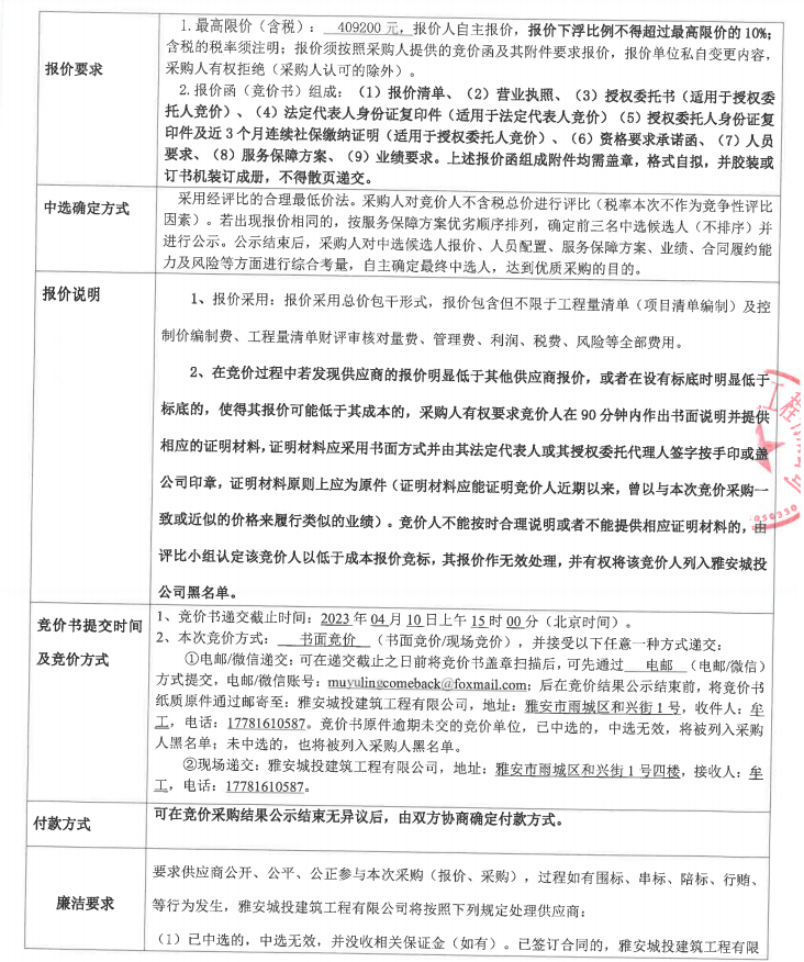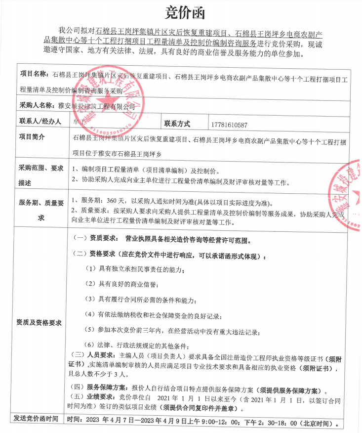 王崗坪集鎮(zhèn)項目、王崗坪集散中心打捆項目工程量清單及控制價編制咨詢服務(wù)采購競價公告