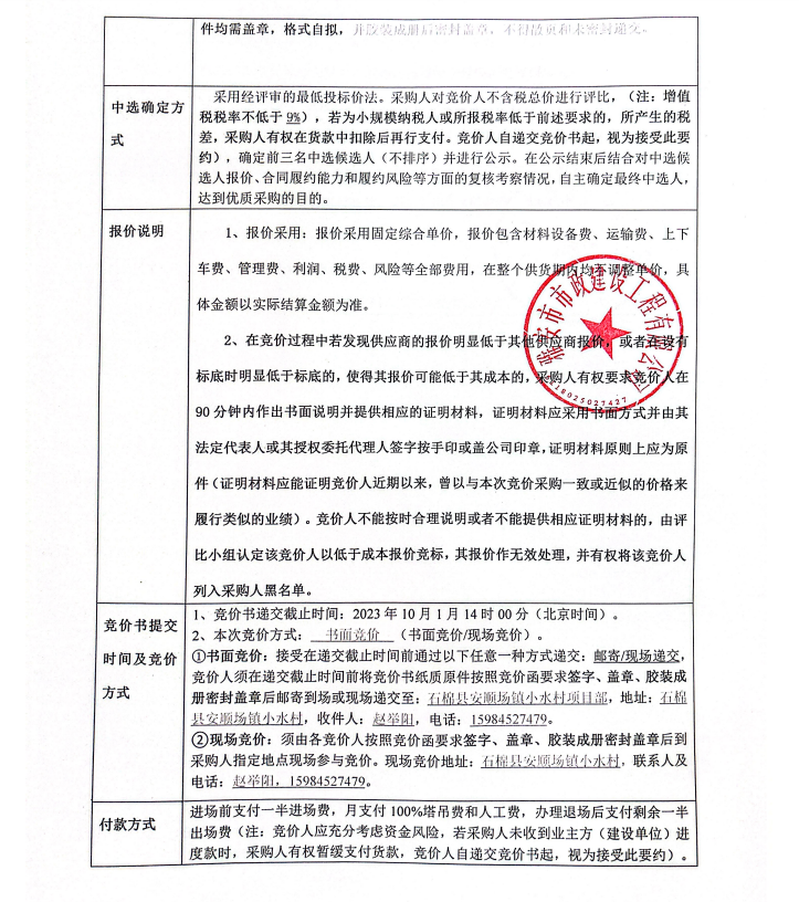 瀘石高速石棉縣段安順場鎮(zhèn)小水村集中安置點(diǎn)建設(shè)工程塔機(jī)租賃采購競價(jià)公告