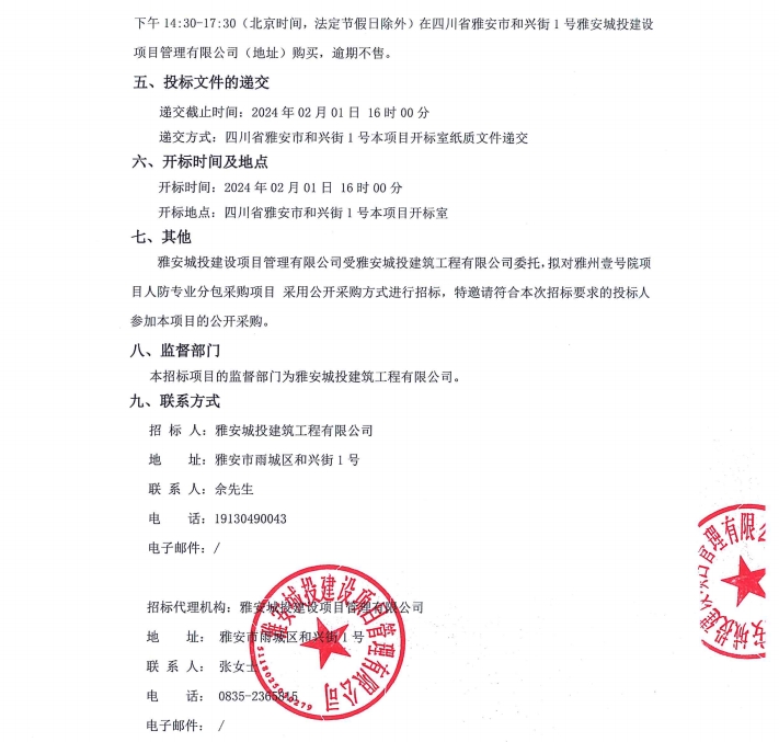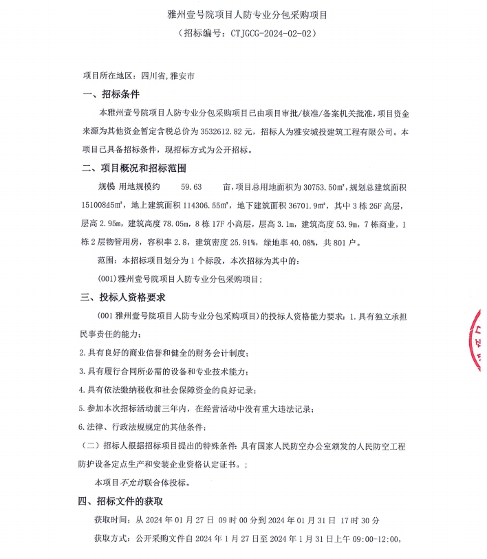 雅州壹號(hào)院項(xiàng)目人防專業(yè)分包采購(gòu)項(xiàng)目公告