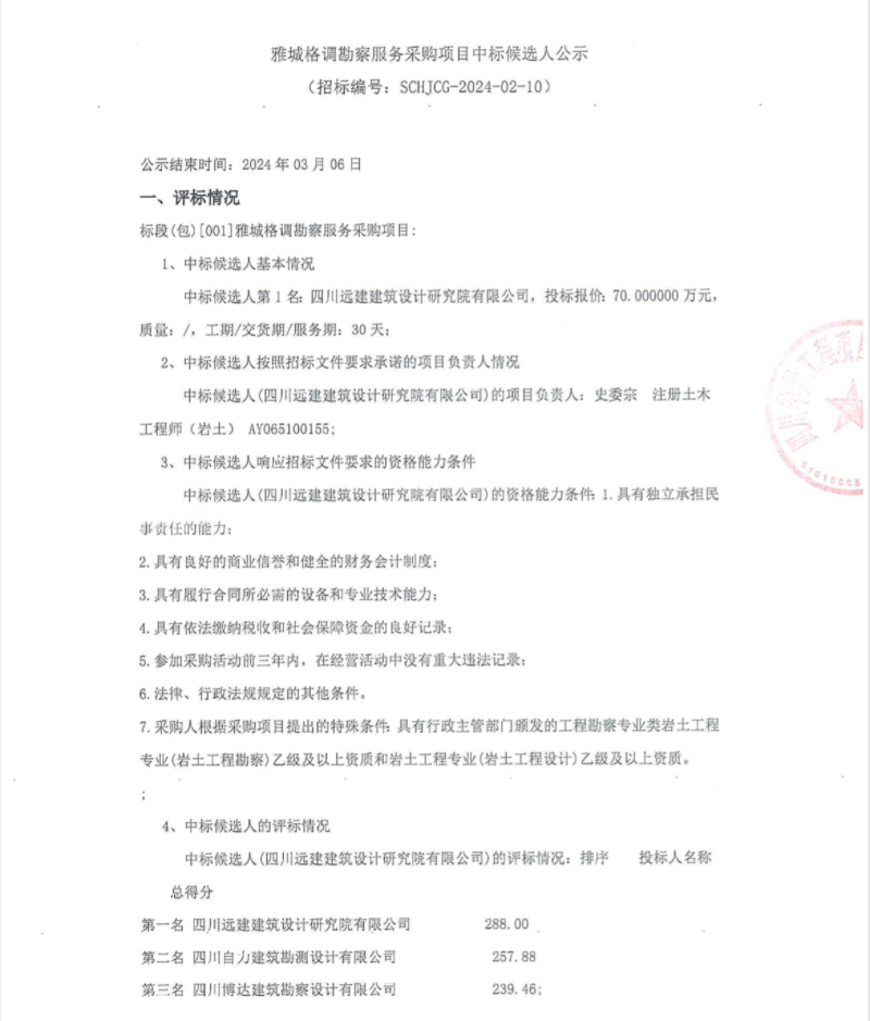 雅城格調(diào)堪察服務(wù)采購(gòu)項(xiàng)目中標(biāo)候選人公示