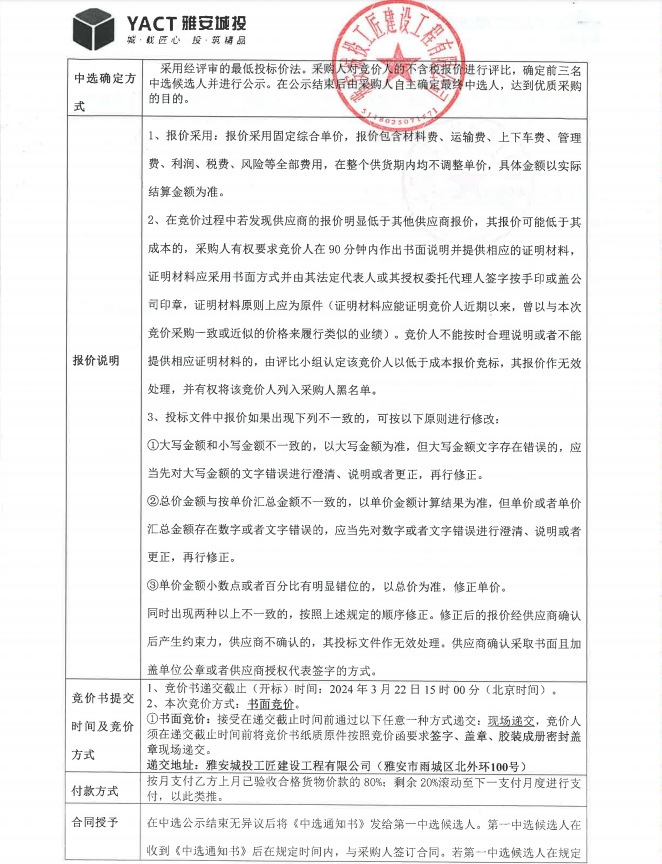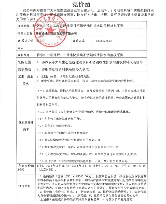 雅安市大興生態(tài)旅游建設(shè)項(xiàng)目不銹鋼線性排水溝蓋板材料采購(gòu)競(jìng)價(jià)公告