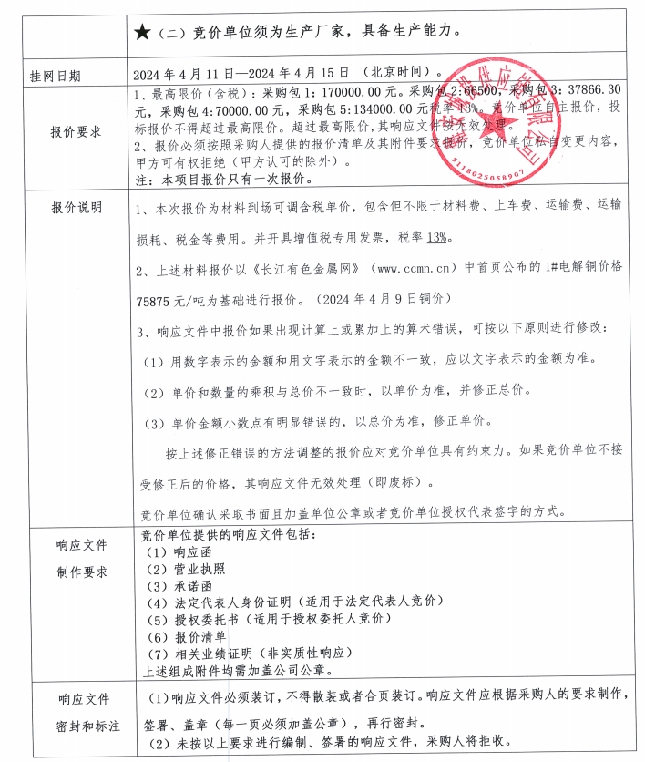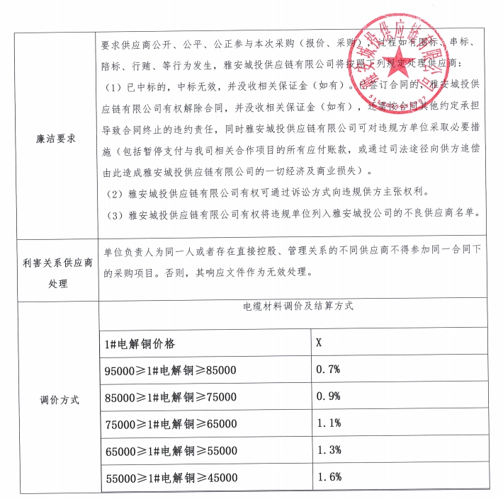 雅安城投供應鏈有限公司電線電纜采購競價公告