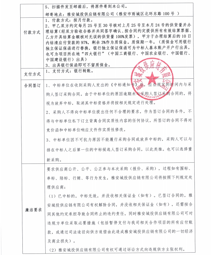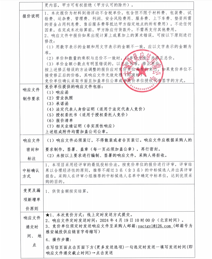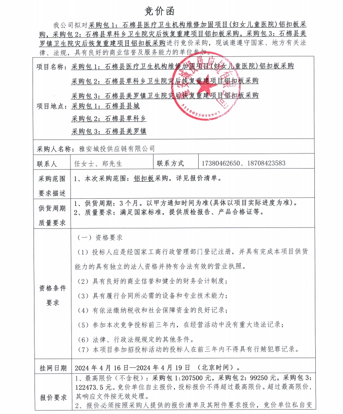 雅安城投供應(yīng)鏈有限公司鋁扣板采購競價公告