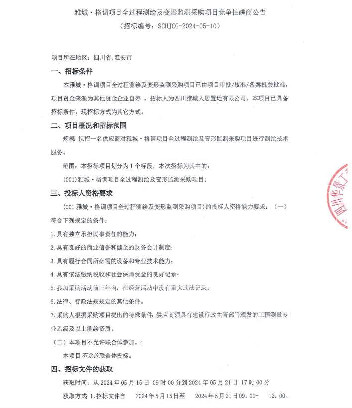 雅城·格調(diào)項(xiàng)目全過程測(cè)繪及變形監(jiān)測(cè)采購項(xiàng)目競(jìng)爭(zhēng)性磋商公告