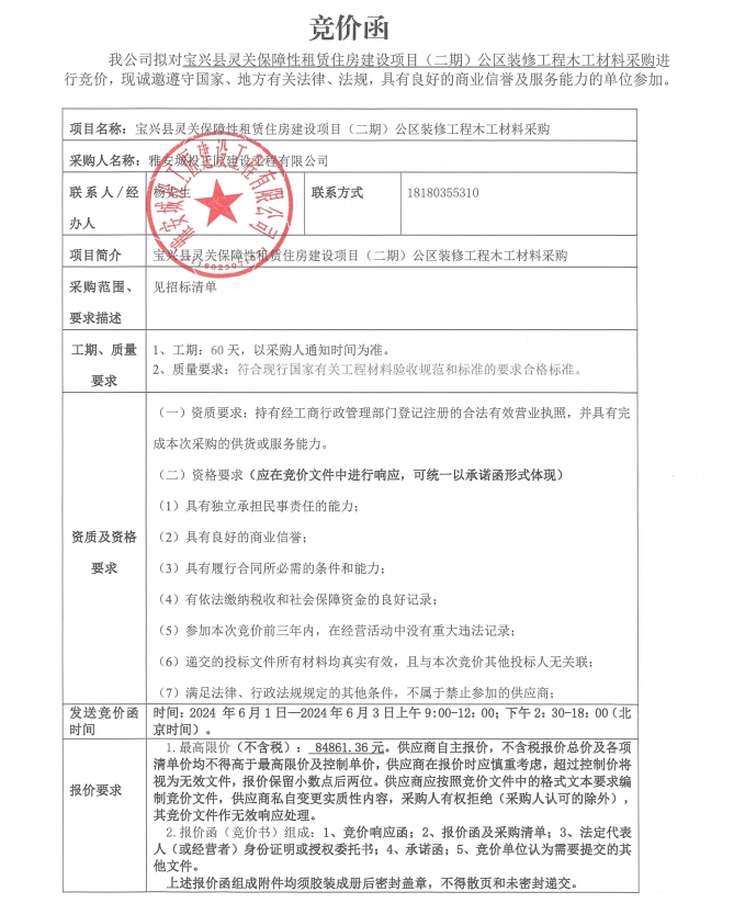 競(jìng)價(jià)函-材料采購(gòu)-安居房公區(qū)裝修