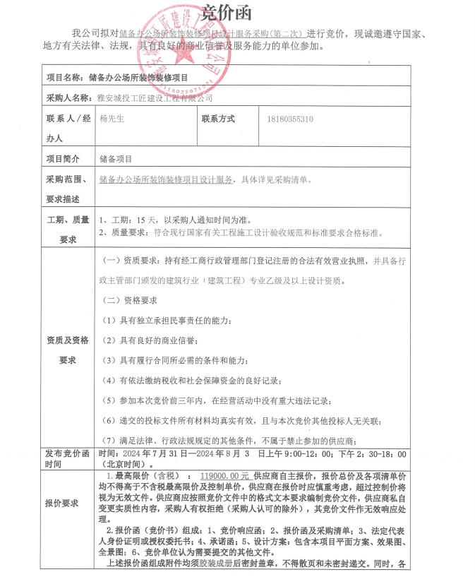 儲備辦公場所裝飾裝修項(xiàng)目設(shè)計服務(wù)采購(第二次)競價公告