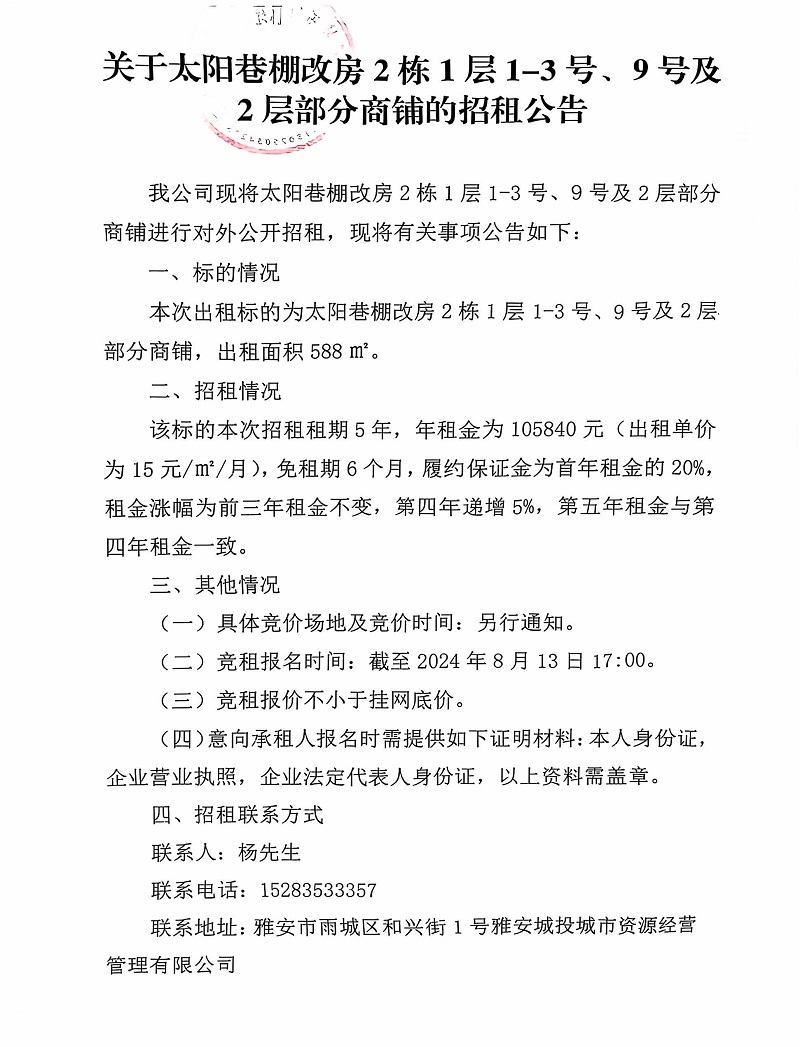 關(guān)于太陽(yáng)巷棚改房2棟1層1-3號(hào)、9號(hào)及2層部分商鋪的招租公告