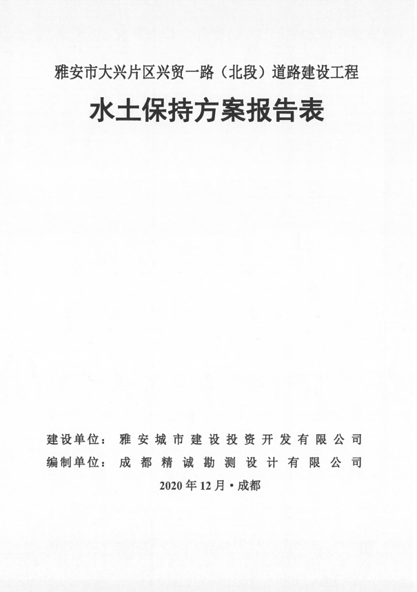 雅安市大新片區(qū)興貿一路(北段)道路建設工程水土保持方案